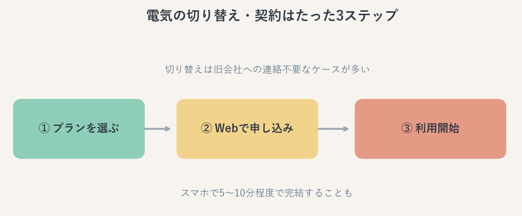 「電気会社を変える」と聞くと大ごとに感じますが、体感としてはサブスクの登録変更に近いです。