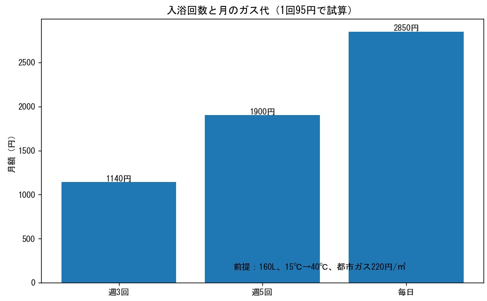 お風呂1回のガス代を95円として計算しています。